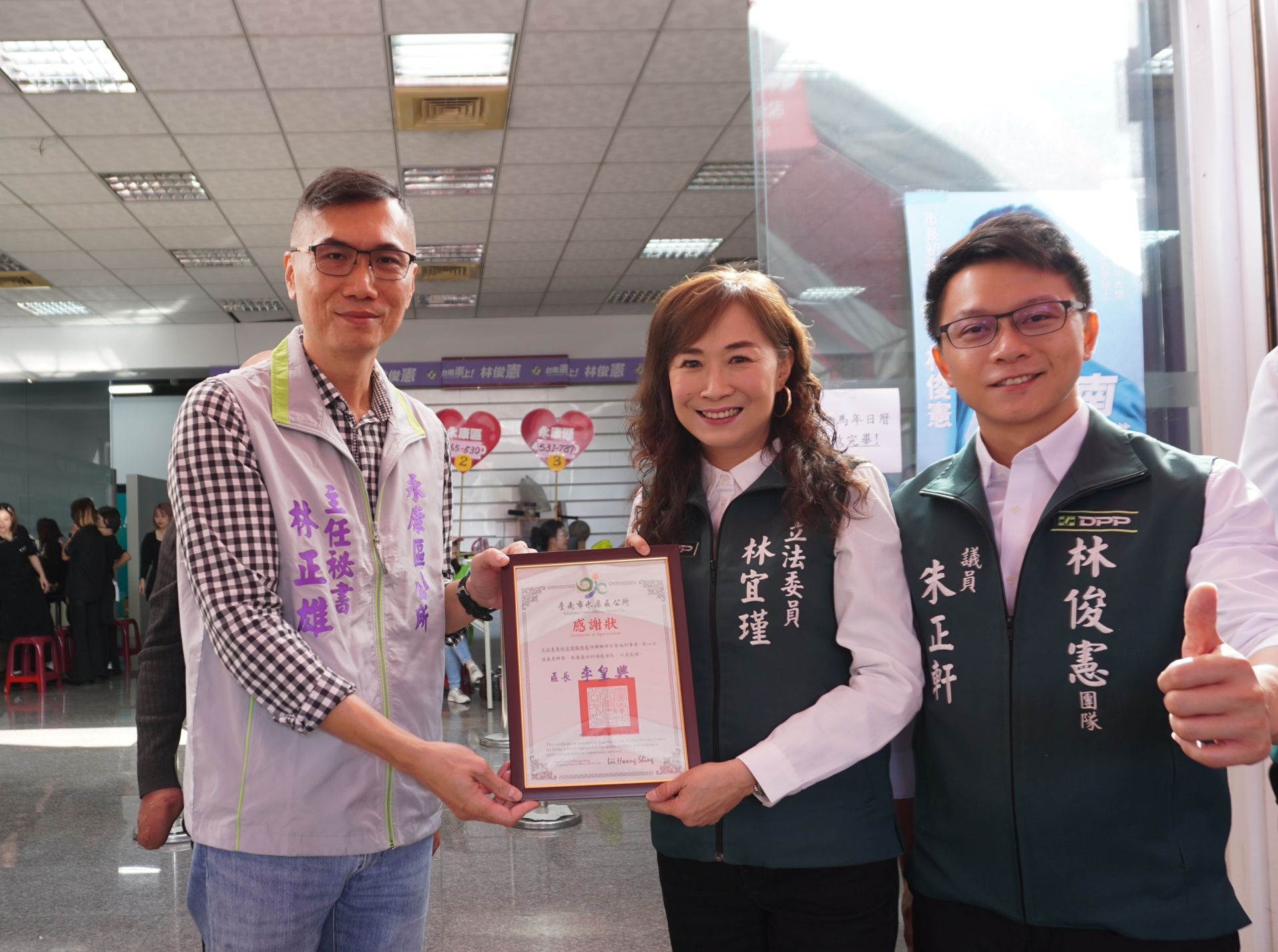 ▲北區公所致贈感謝狀給立委林宜瑾等人。(記者黃雋淮 翻攝)