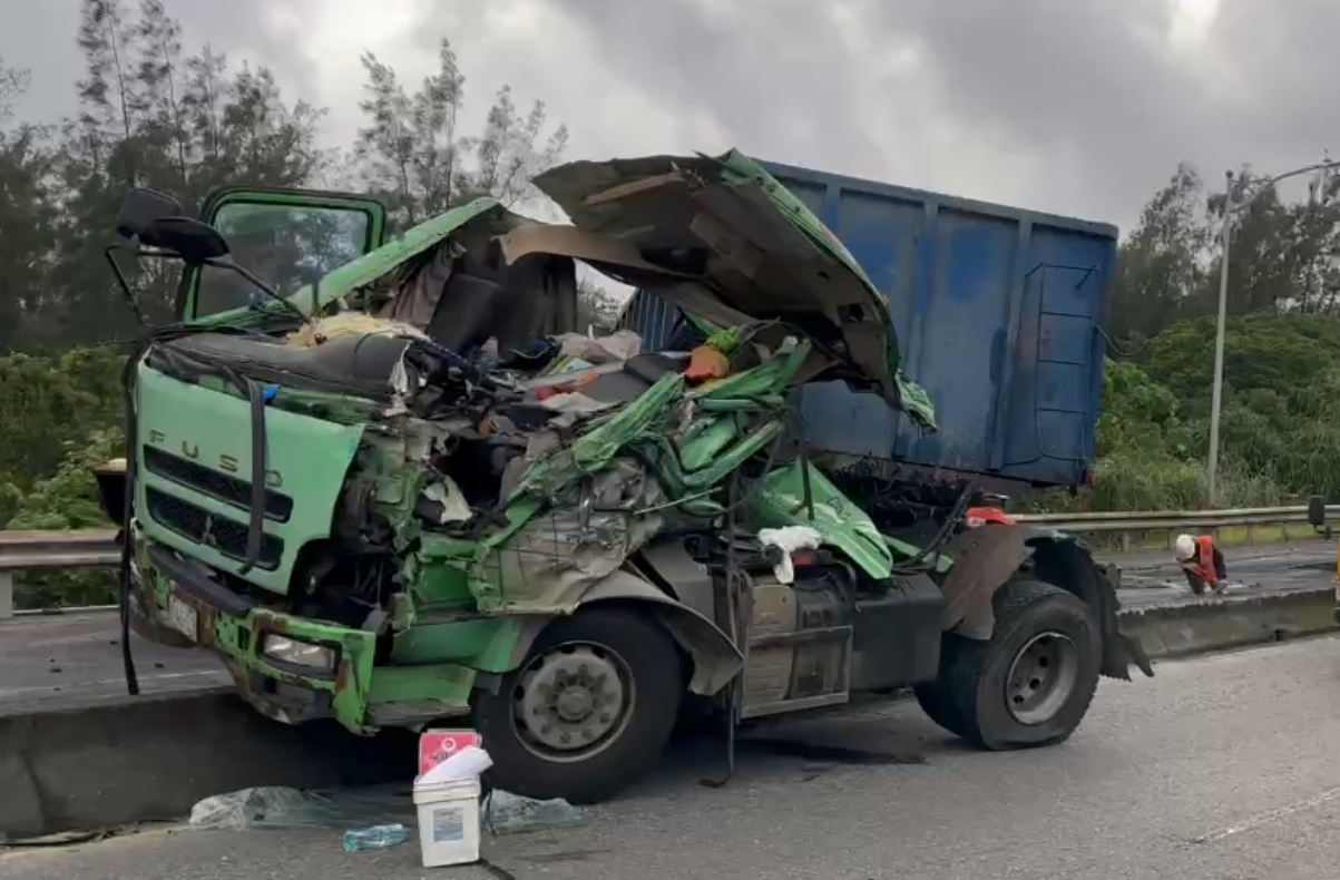 大貨車車頭撞爛,駕駛受困車內當場死亡。翻攝畫面