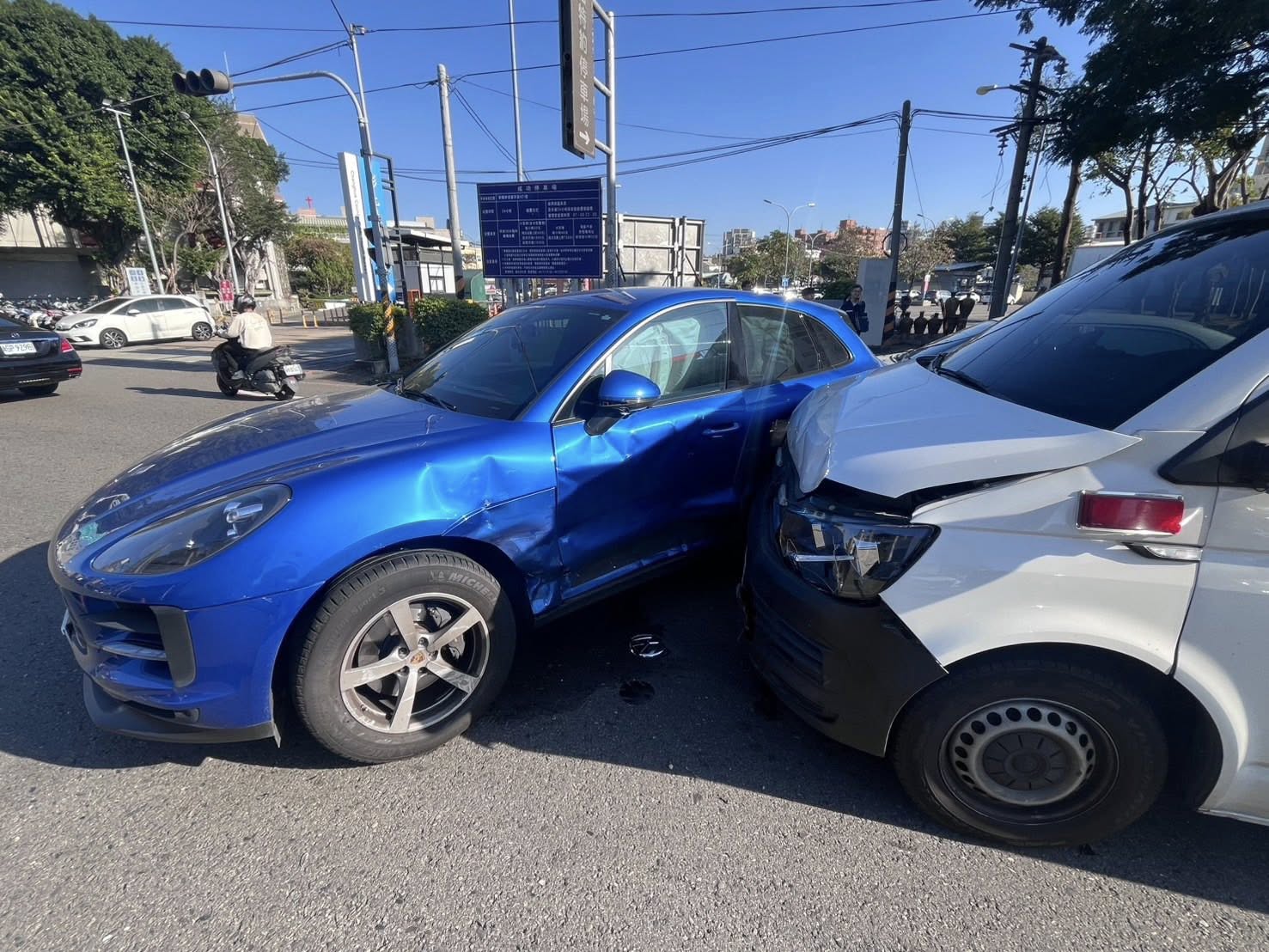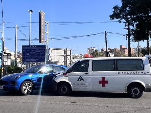 【Lai傳媒、記者爆料網/林千允/彰化報導】今(11)日下午2點多,彰化市中山路與仁愛路口上演一場驚險對撞,一輛正執勤、車上載著病患的民間救護車,與一輛保時捷 Macan 在路口相互撞上,兩車車頭毀損、零件散落一地,嚇壞不少正在等紅燈的民眾。