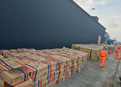 興達港查獲市傎逾億元私菸。翻攝畫面