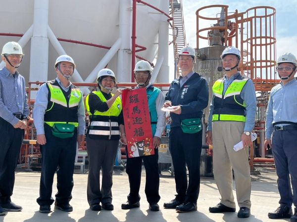 羅達生副市長並向現場作業的勞工朋友致贈春聯拜早年,勉勵業者與勞工齊心協力,透過全員參與的方式,來強化製程安全管理。羅達生指出,市府近年與中央共同攜手,針對林園產業園區石化廠推動智慧石化永續發展計畫,期望藉由數位化與低碳轉型,帶動高雄石化產業邁向安全永續的高值未來。看到業者積極投入新興智慧科技的應用,包括利用AI技術辨識槽車作業人員安全作業行為,當辨識違反標準作業程序時,現場即撥放語音提示作業人員;建置偵準系統針對煙霧及洩漏進行偵測,以利早期發現並預防事故的發生,進一步讓勞工平安工作、居民安心生活。