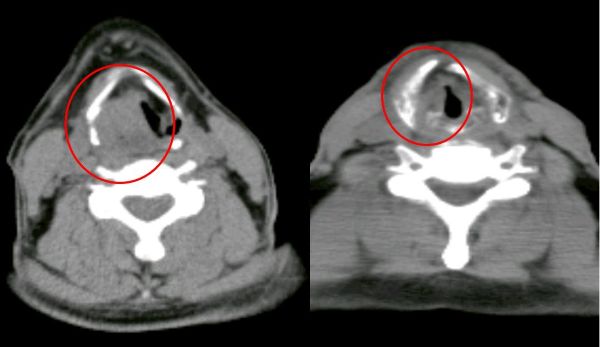 經耳鼻喉科醫師安排內視鏡檢查,於下咽部位發現可疑病灶,切片檢查後確診為下咽癌,並透過電腦斷層等影像檢查綜合評估,判定為第三期。突如其來的診斷結果,讓病人與家屬感到憂心。