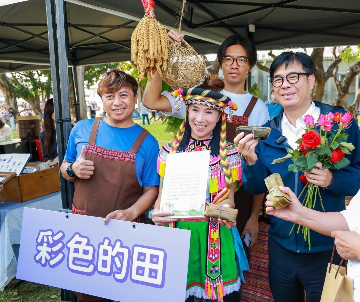 活動最後,陳其邁也走訪會場各個女力攤位,發送象徵祝福的紅色玫瑰花,並與民眾合照、簽名互動,現場氣氛熱絡。
