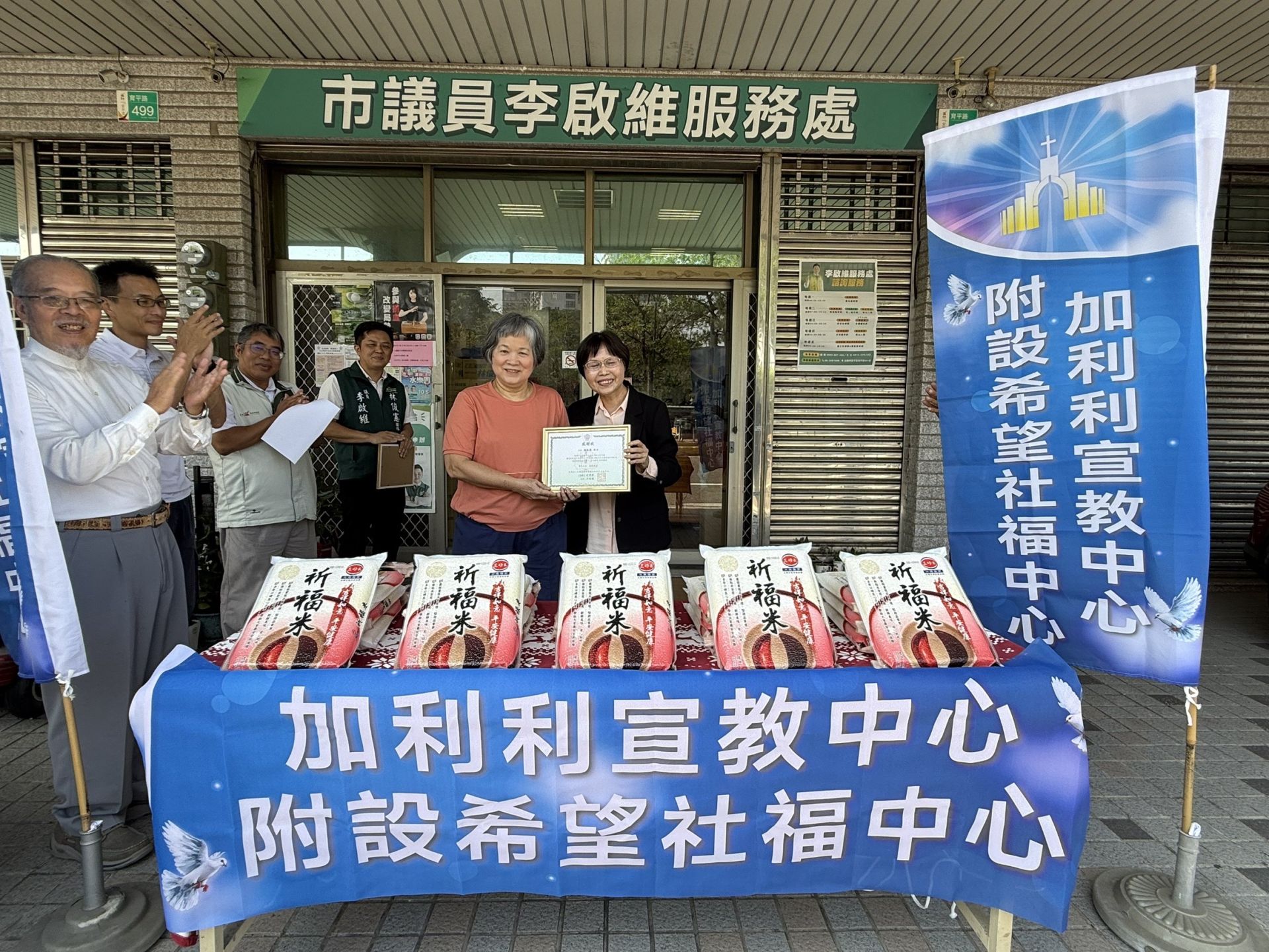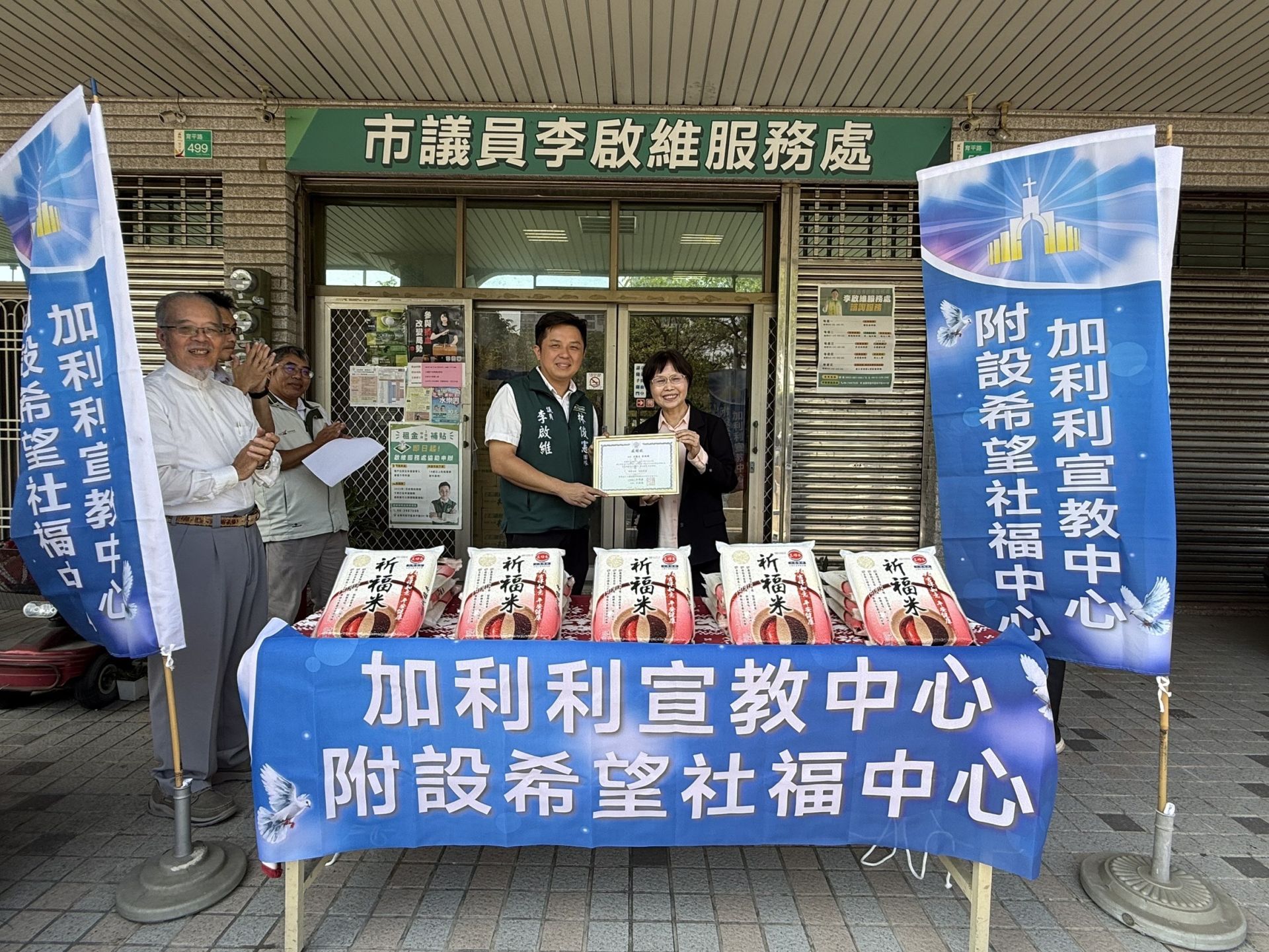 加利利宣教中心附設希望社福中心是一個非營利單位,長期推動經濟弱勢家庭扶幼工作,所有經費來源皆仰賴教會與社會各界的愛心奉獻。台南市議員李啟維邀集社會善眾及熱心公益企業,捐助逾1398公斤米及7萬多元現金給加利利,29日上午11點在李啟維服務處舉行捐贈儀式。
