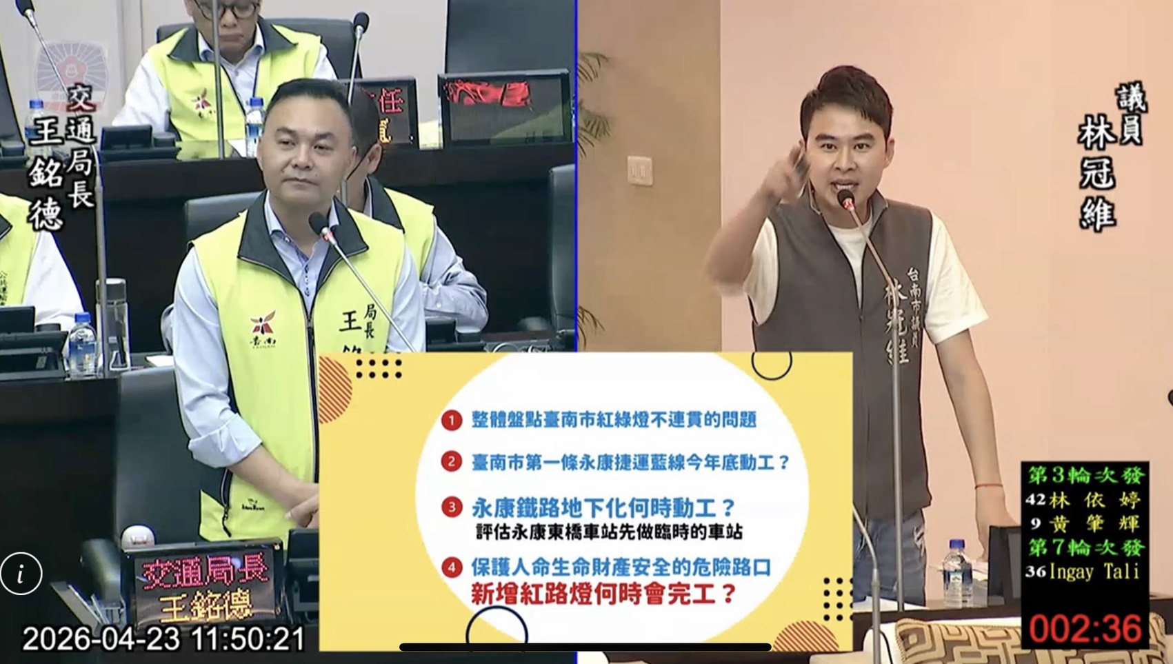 針對臺南市部分路段紅綠燈號誌未能有效連鎖,導致車輛在綠燈通行時仍無法順暢銜接至下一路口的情況,長期以來已成為市民及通勤族關注的交通痛點。對此,臺南市議員林冠維於議會質詢時,要求交通局立即全面盤點永康區及臺南市區相關問題,並儘速提出改善措施。